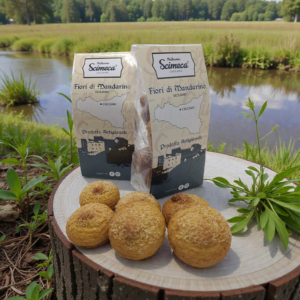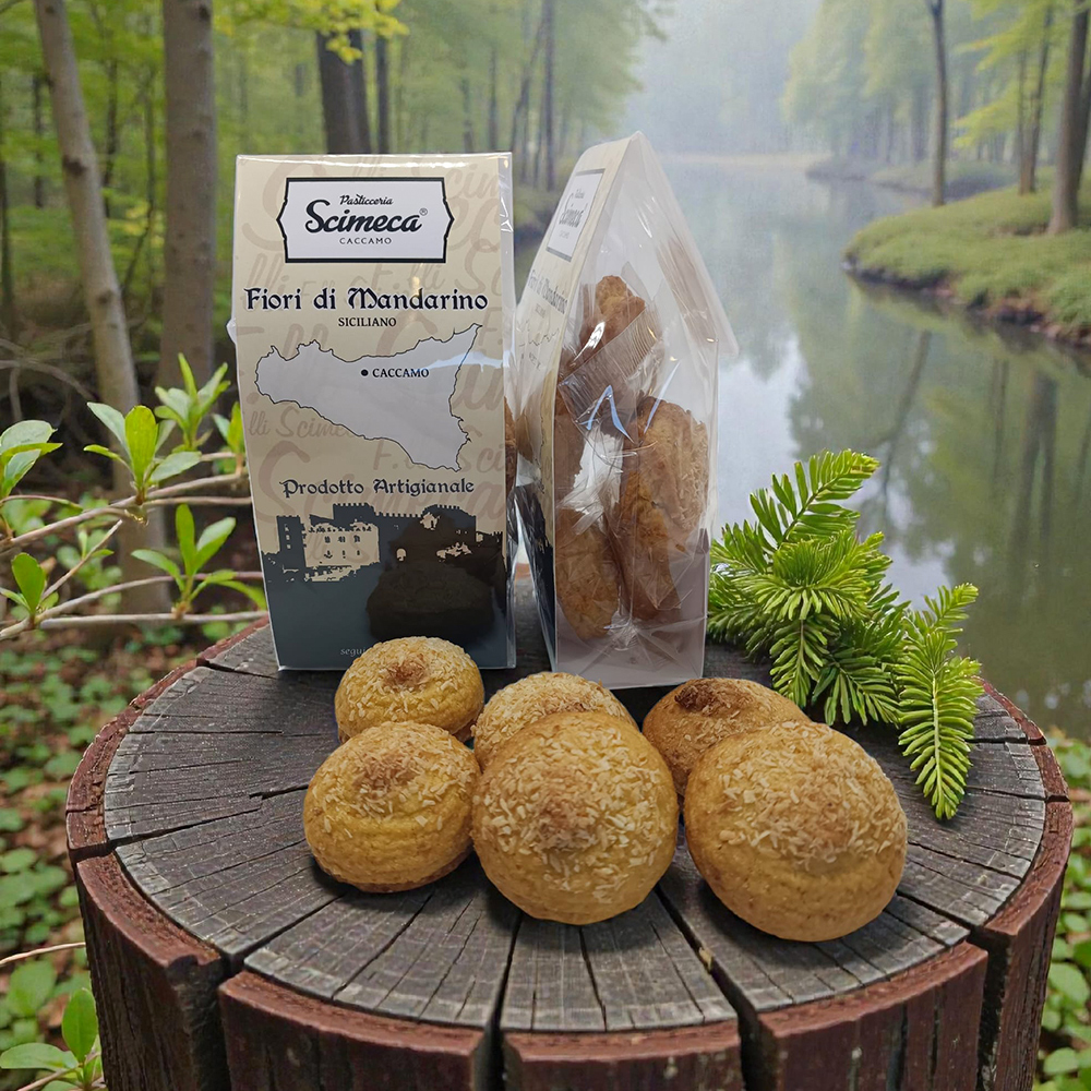 Very soft almond paste flavored with mandarin, one of the most classic fruits of the Sicilian agricultural tradition, covered with coconut grains to give a unique and unrepeatable flavor.