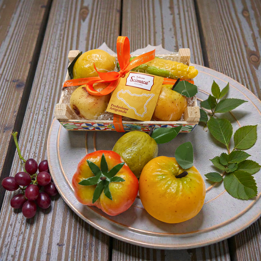 Comunemente nota come Marzapane, è uno dei più antichi e noti prodotti della tradizione pasticcera Siciliana. Ogni singolo frutto viene plasmato e decorato manualmente, mantenendo ancora oggi una lavorazione assolutamente artigianale.